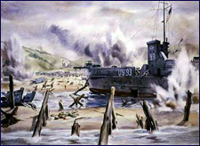 for the many wounded servicemen and dying fellow officers before going ashore on Easy Red. [D-Day art by