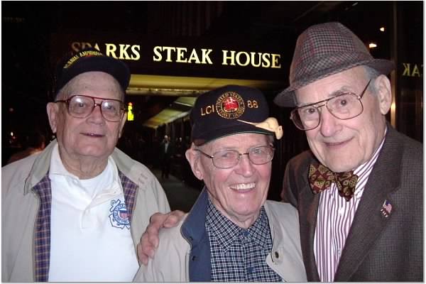 Navy corpsman Joe Brennan is about to go ashore Okinawa in the Pacific theatre during WWII. Beachmaster Virgil Weathers, who died in 2008, is to Joe's left. The black and white photo was first published in Navy Medicine at Normandy D-Day June 6, 1944.At the 2001 U.S. Navy Memorial, Washington, DC premiere of the Navy documentary are, left to right, Historian Jan Herman, Corpsman Vince Kordack, Beachmaster Joseph Vaghi, Dr. Richard Borden, Dr. Joseph Brennan, Dr. Lee Parker and Director Jack Lewin.