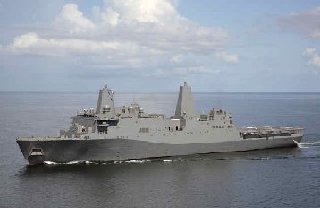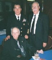 Representing the 6th Naval Beach Battalion, Norm Hartline, seated, and Bob Watson were in attendance for the USS Green Bay (LPD-20) Commissioning 24 January 2009. The USS Green Bay is one of a number of amphibious transports built after the 9/11 attack. Master Chief Cecilio I. Macias of the USS Green Bay pays a tribute to two old amphibians.